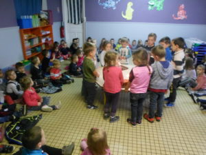 Vendredi 29 septembre, toutes les classes de maternelle se sont retrouvées pour fêter les anniversaires des enfants nés aux mois d’août et septembre.