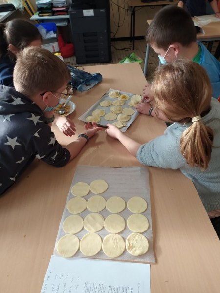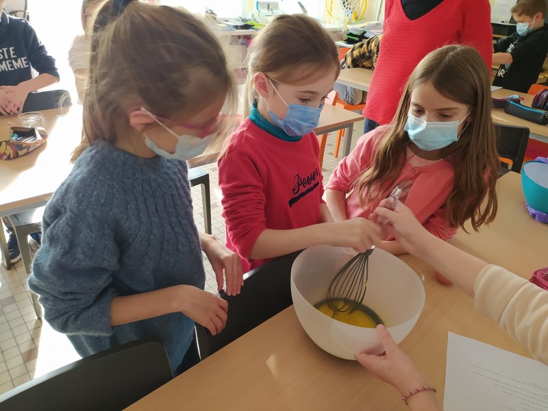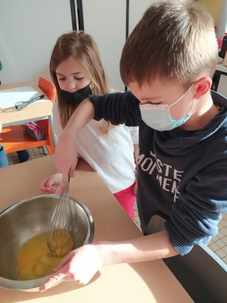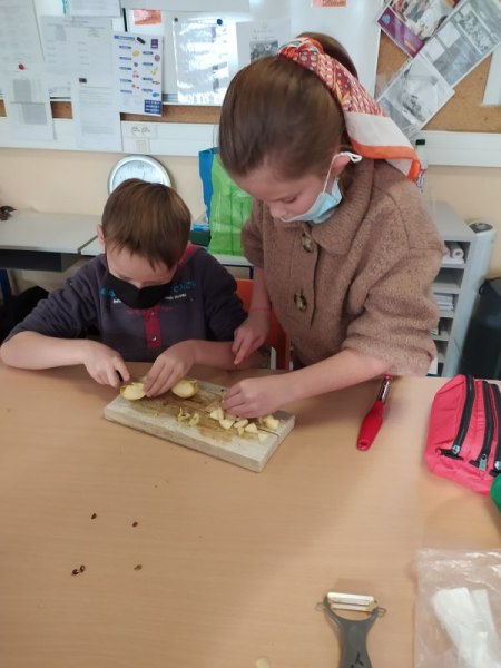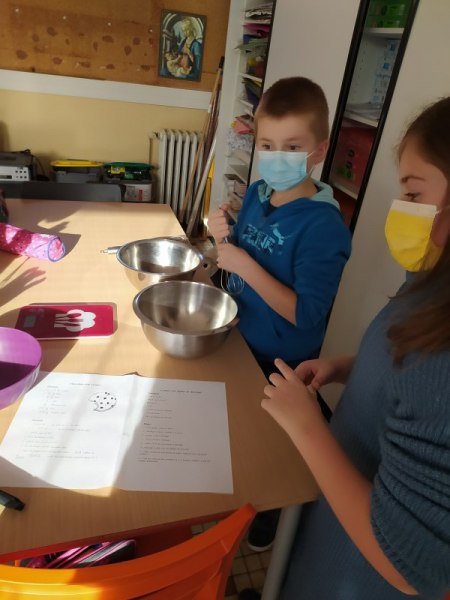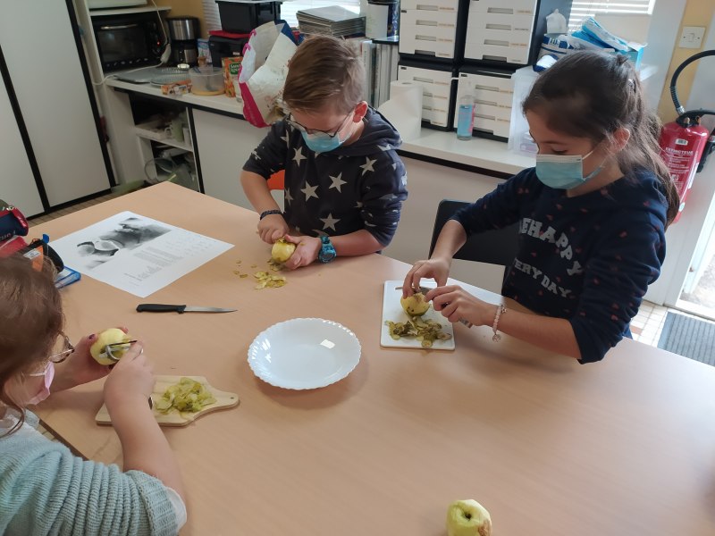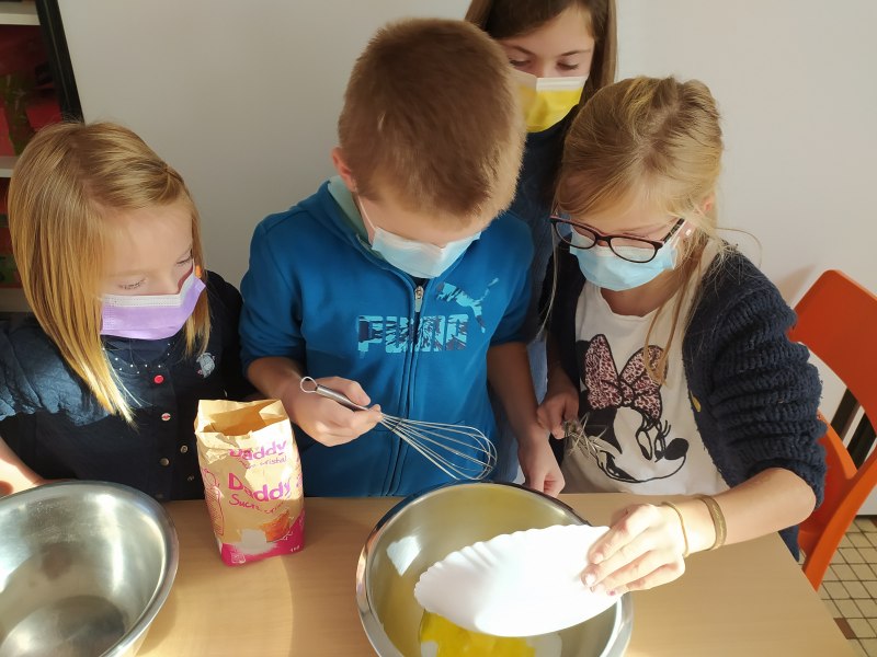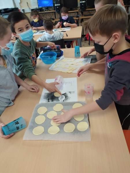 By classe Marie5 décembre 2021CE2 En anglais, nous avons fait deux groupes. Le premier a cuisiné des Cookies, le deuxième des Baby Apple Pies. Nous avons appris le nom des ingrédients en anglais et avons gardé les recettes pour les refaire chez nous. [Montrer sous forme de diaporama]