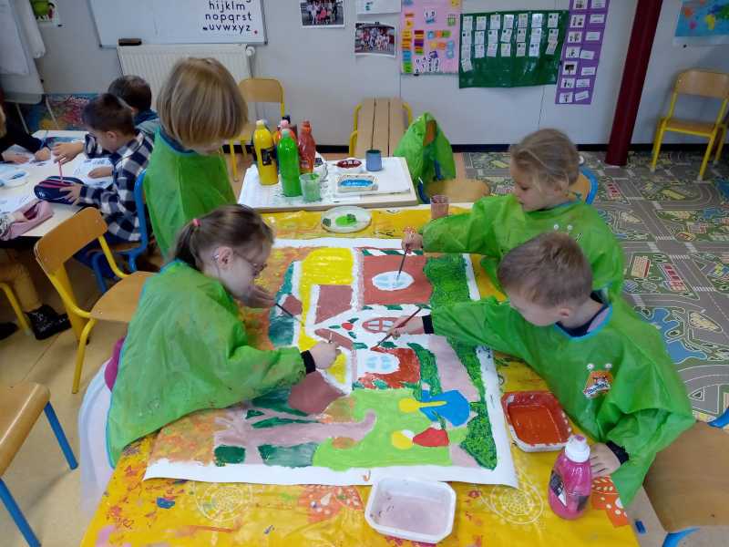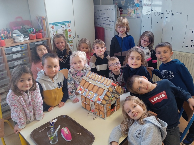 Les enfants de GS et CP ont peint la couverture de l’album et réalisé la maison d’Hansel et Gretel en biscuits (dévorée l’après-midi même…). Ils ont aussi représenté l’histoire en legos. Laetitia (stagiaire), nous a aidés pendant les ateliers.