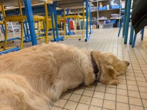 Françoise vient certains mercredis matin, et nous profitons de la présence de son chien Orphée, comme ce matin, pendant les APC.