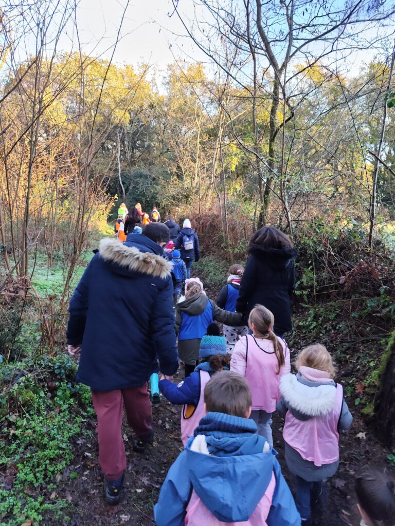 Les élèves de Moyenne Section et de CE1 se sont retrouvés en parrainage pour une randonnée contée.