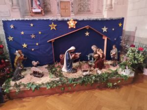 En partant chaque élève est passé devant la crèche et est reparti avec une carte de Noël réalisée par un de ses camarades de l’école.