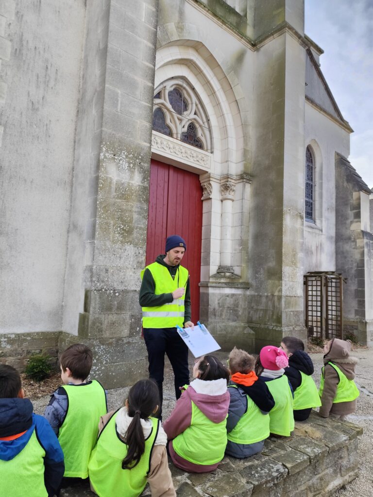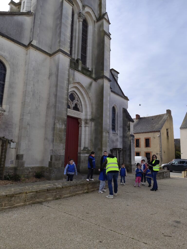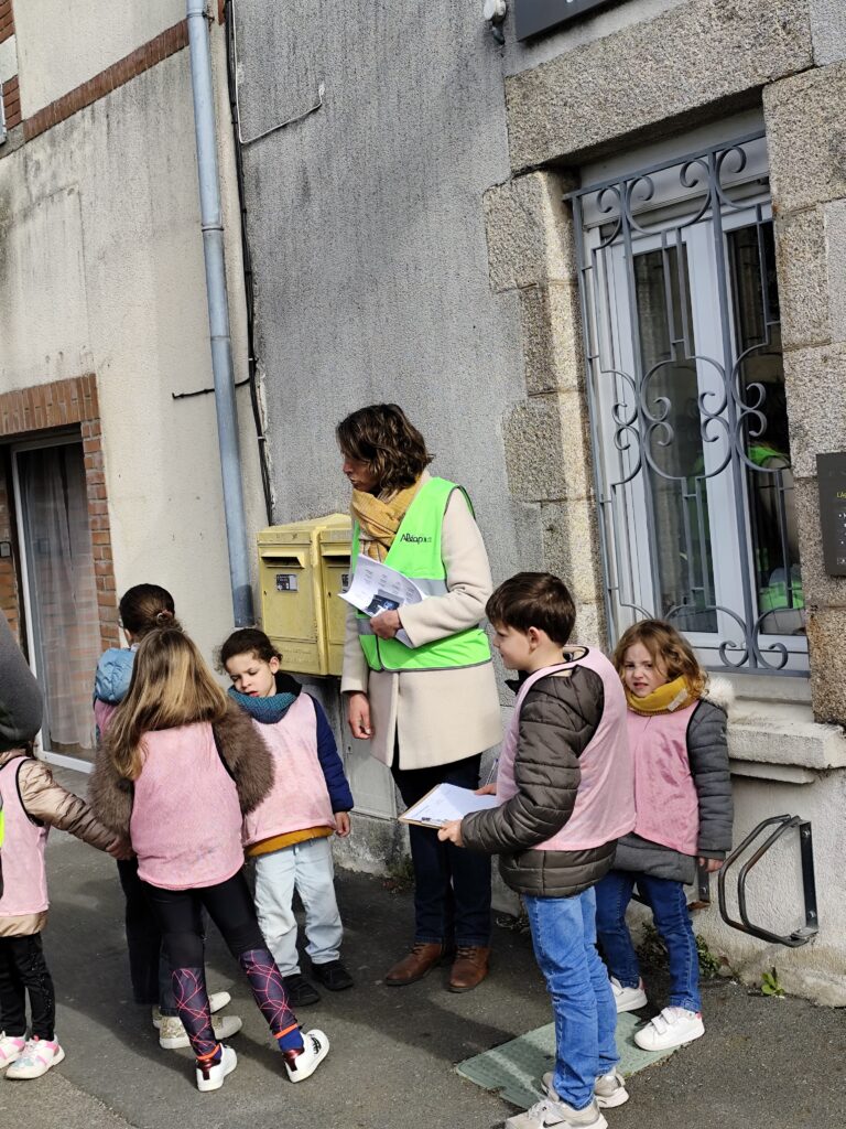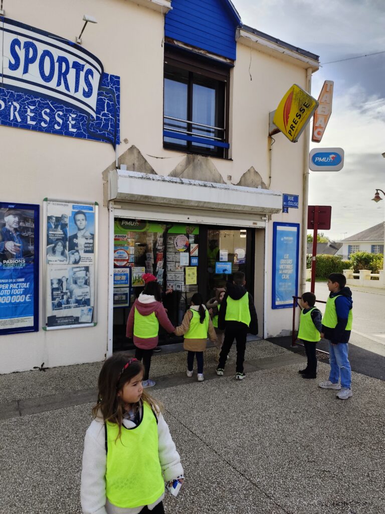 Avec nos filleuls de Moyenne Section, nous sommes allés dans le bourg de Prinquiau à la recherche de lieux dont nous avions les photos. Nous devions trouver où chaque cliché avait été pris, qui y travaillait et ce qu’il ou elle y faisait.